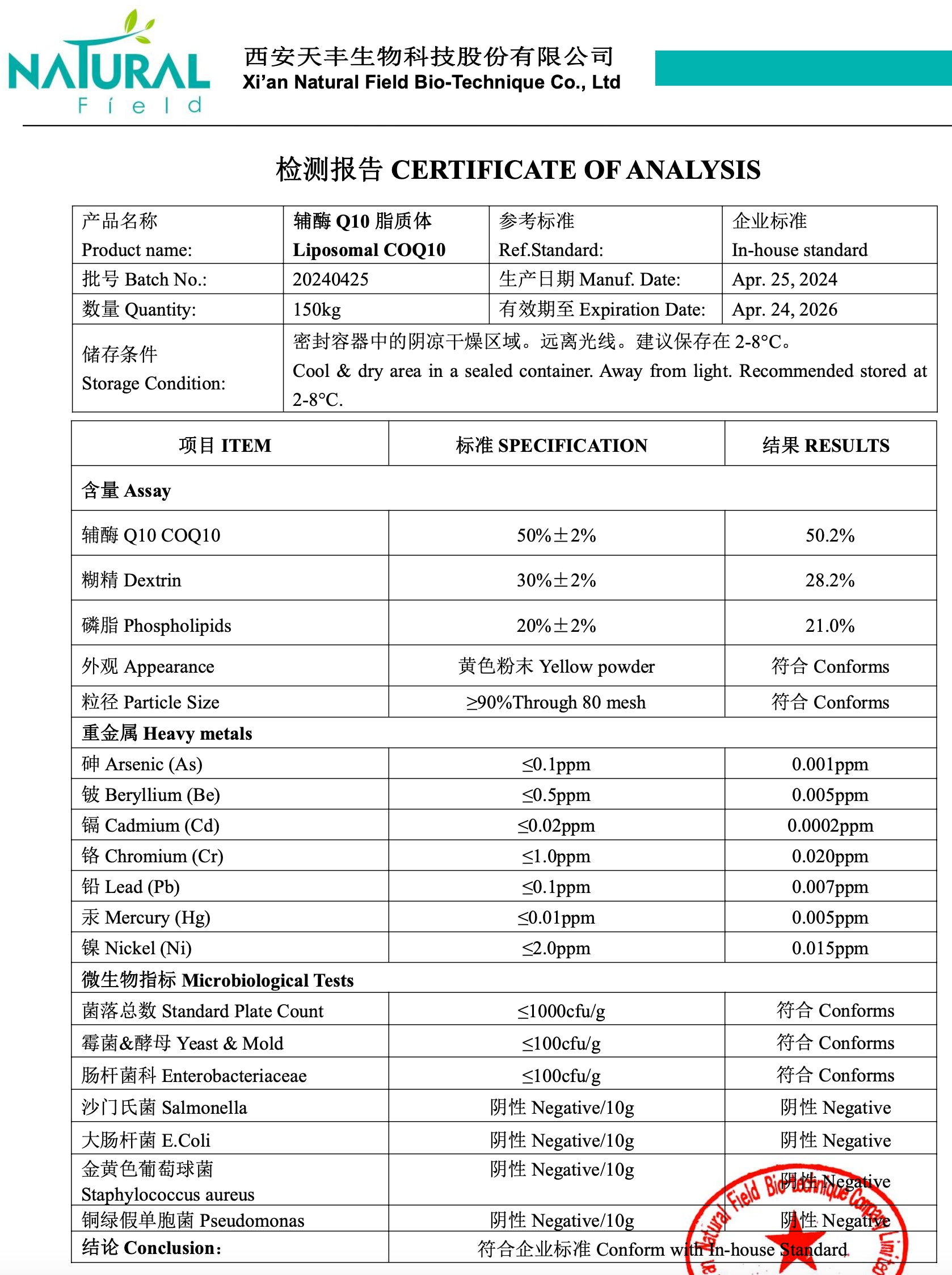 - Darreichungsform: liposomales Coenzym Q10 als Pulver