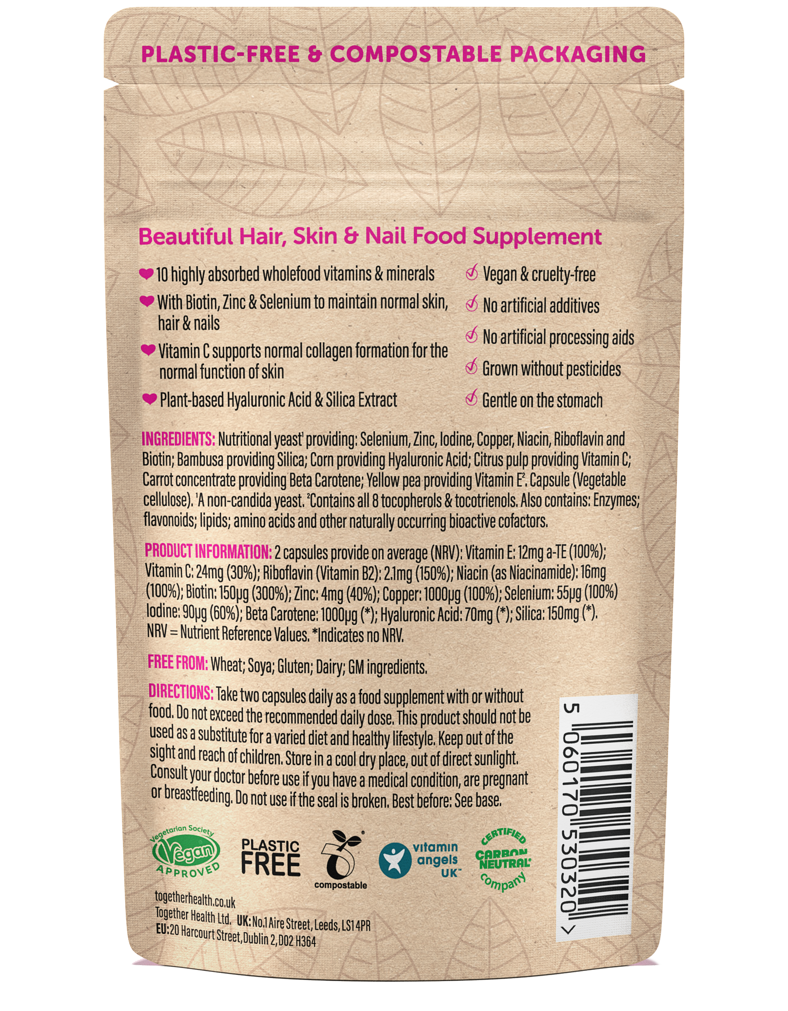 Wir haben ein Inner-Beauty-Nahrungsergänzungsmittel entwickelt, das Sie ein wenig besonders aussehen und fühlen lässt. Neben all den Vorteilen unserer beliebten, lebensmittelbasierten Vitamine und Mineralien haben wir sorgfältig eine Kombination aus natürlichen, strahlenden Nährstoffen ausgewählt, um Ihr Haar, Ihre Haut und Ihre Nägel zu bereichern.
